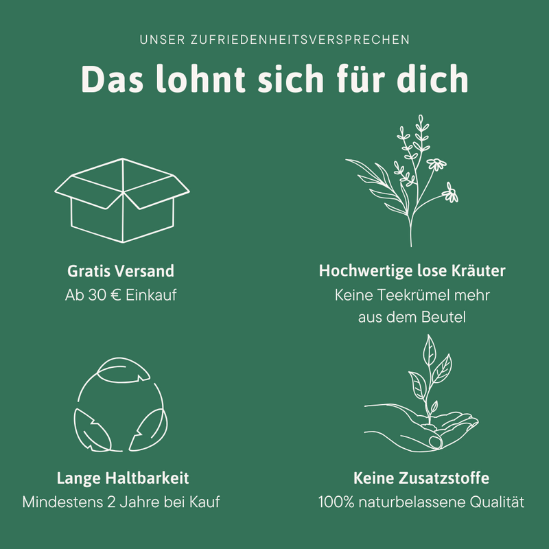 Wichtiger Hinweis: Immer mit sprudelnd kochendem Wasser aufgießen, mindestens 5 Minuten ziehen lassen. Nur so erhältst du ein sicheres Lebensmittel!