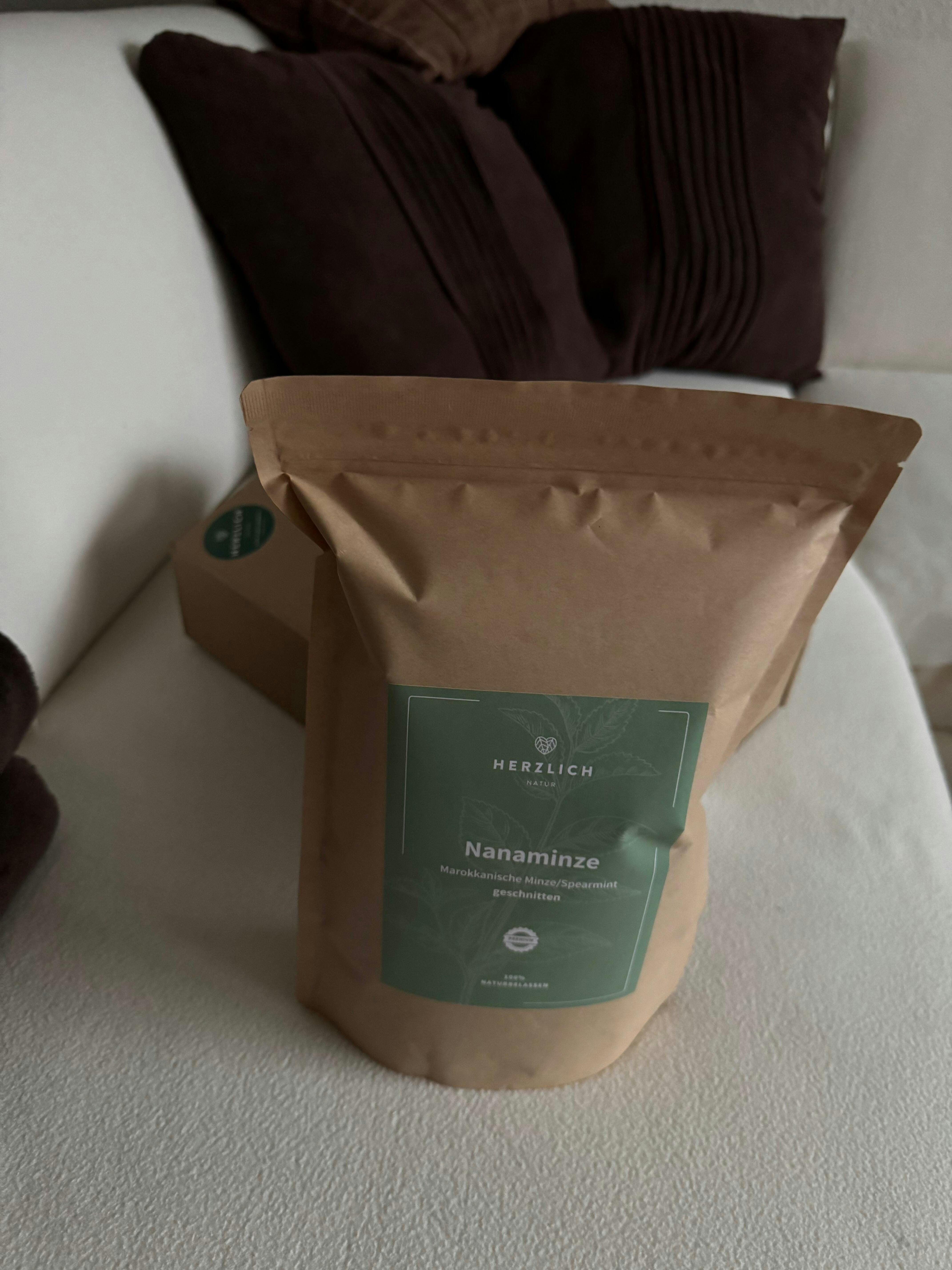 Unsere getrocknete Nanaminze ist besonders aromatisch und direkt einsatzbereit. Zwei Teelöffel pro Tasse reichen aus – einfach mit heißem Wasser übergießen, 8–10 Minuten ziehen lassen, fertig ist dein hausgemachter Minztee! Auch für kalte Sommergetränke wie Eistee oder „Hugo“ eignet sich die Minze hervorragend.