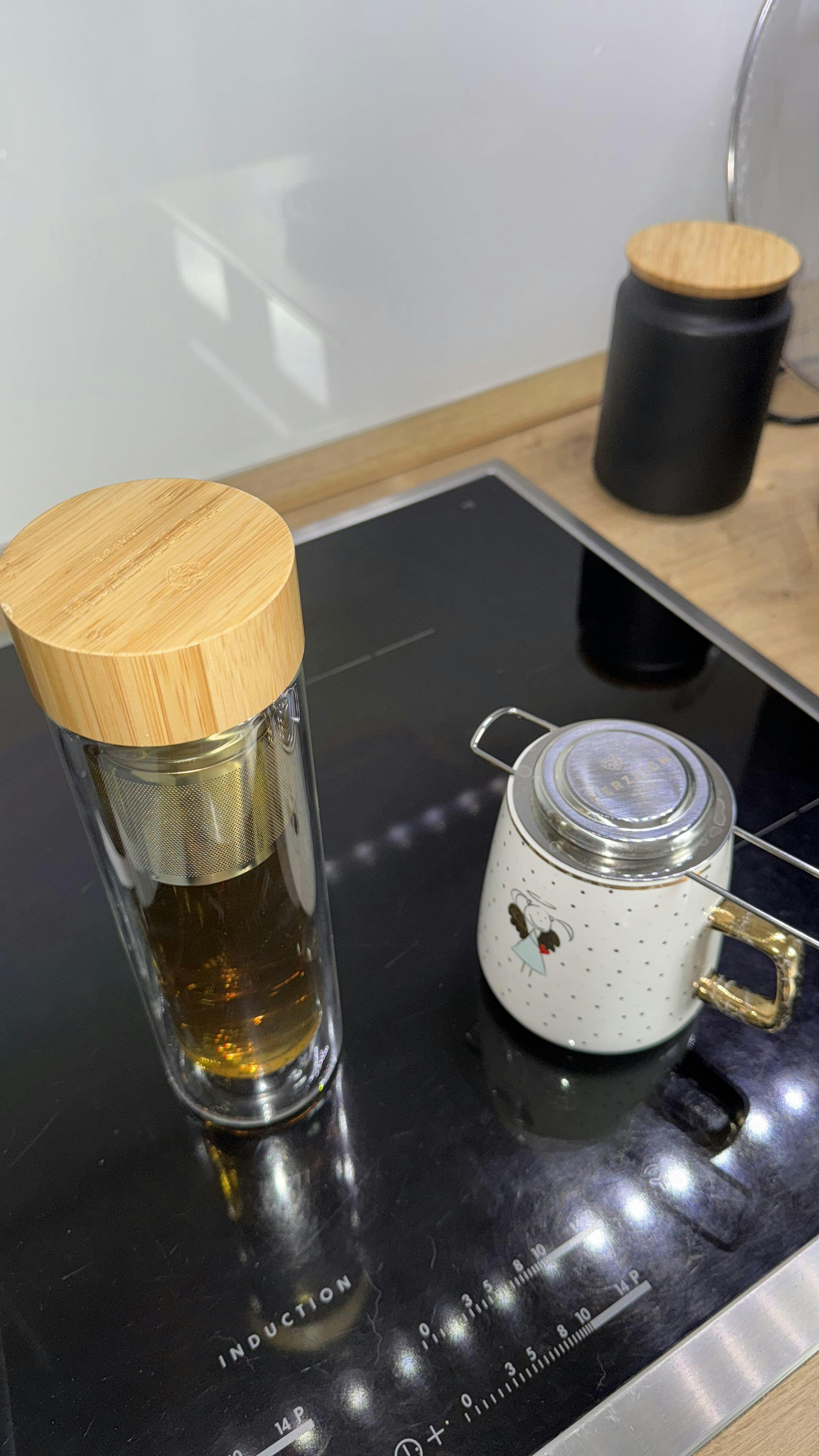 Genieße die perfekte Tasse Tee – wo und wann immer du möchtest – mit unserer hochwertigen Teeflasche aus Borosilikatglas!